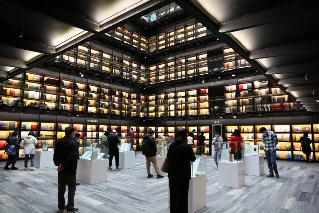 展览恰好位于高18米、宽60米,总面积1080平方米的书墙中央区域,四面环绕的1131个书格内藏有雅昌团队精选的3万册图书,书籍内容涵盖美术、摄影、建筑、设计、音乐、食谱等各品类