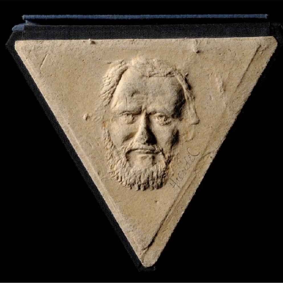 Bill Haendel是一位美国艺术家,由于仰慕意大利艺术家手作书工匠精湛的技艺,特意前往米兰寻求工匠以制作此书。《梦想盒子》乍看过去是一个可以摆在桌面上的纸质三棱柱体,通体蓝色,平淡无奇;但揭开盒子,无处不在的细节就会豁然开朗。盒盖上方,是一张手作书作者Bill Haendel的纸质头像浮雕,打开盒子,盒底上方位置则是这本手作书制作者Giorgio Upiglio的纸质头像浮雕,两处浮雕均有艺术家的铅笔签名。