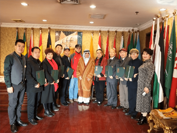 在C B D 公 共 外 交 中 心,穆 斯 塔 法·萨 法 日 尼 大 使 用流利的中文欢迎艺术家赵玉林的到来,大使本人表示十分热爱和尊重中 国 传 统 文化,感谢名家艺术联盟为爱好中国文化的国 际 友 人 搭建友谊沟通桥梁,对书画家的艺术造诣和高尚品格表示深为敬佩。