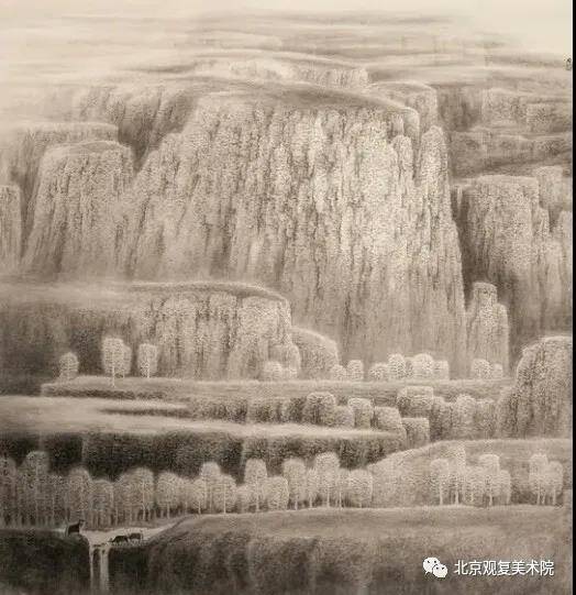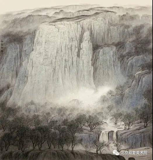 他的这种手法表现的山石非常坚固、硬朗、规律,很具有装饰性。他这种形式的作品《静山净水》、《太行深处》等参加了全国性大展,并得到专家及同行们的一致好评及认同,从而形成了他独一无二的个人绘画语言。