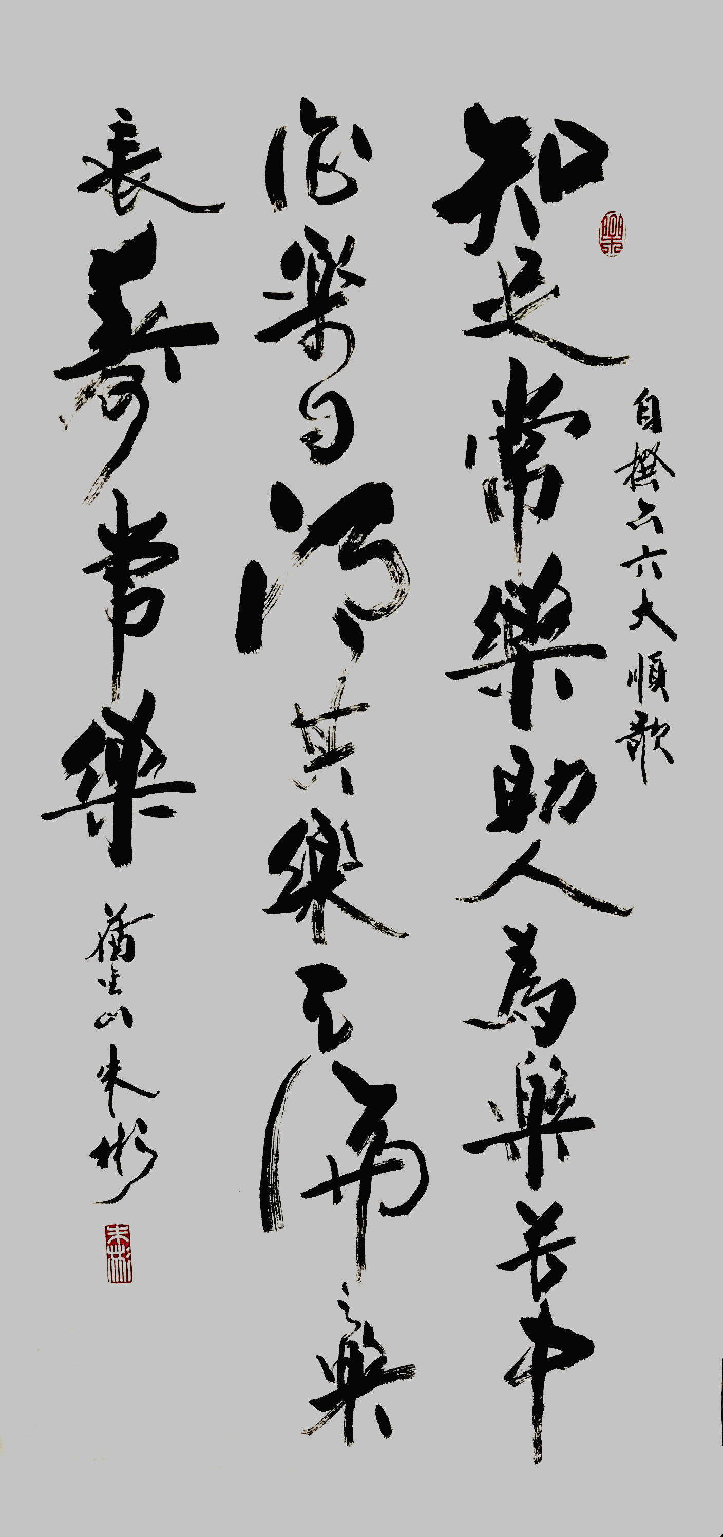 笃信《天道酬勤》的朱彬先生几十年来潜心遍临古碑诸帖,善汲各派之长,传统书法功底扎实,其深厚的文化底蕴与世俱进专注原创,将诗、联、书法融汇结合的《诗联墨韵》三佳一绝艺术作品深得读者赞赏和喜爱。