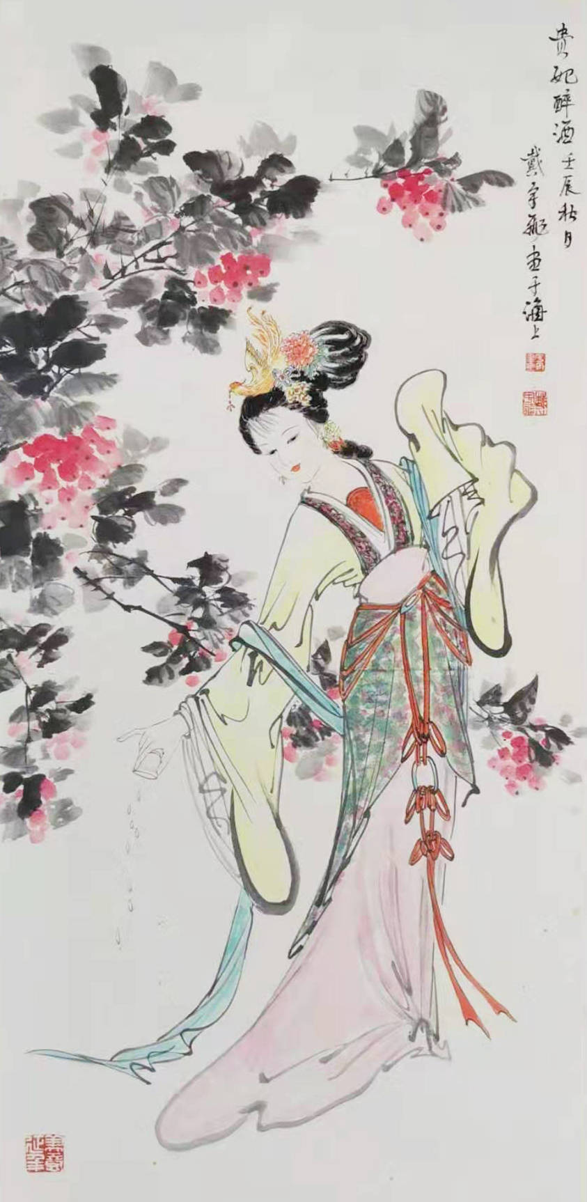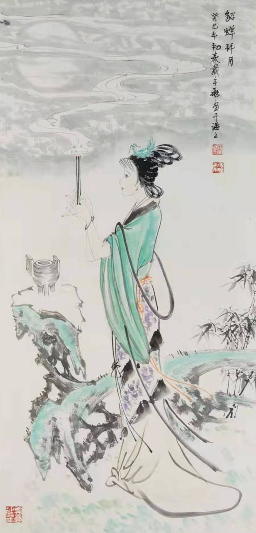 她研习宋元以来大家作品汲取精髓,师古而不泥古,在创作中追求新意,墨韵传神,兼工带写仕女画用笔流畅灵活有力,写意画奔放雄伟,水墨淋漓,笔墨非凡,别具苍劲灵动的神韵。